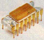 zeigt den ersten IC der Welt, etwa 4 cm lang. Die Abbildung links zeigt
