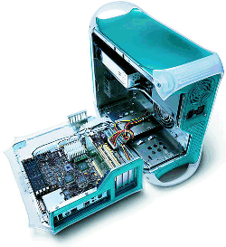 Ein Blick in einen geöffneten Apple G3 Rechner zeigt wie