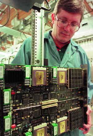 von vier Pentium PRO und zwei RAM Bänken mit zusammen 4 GByte Arbeitsspeicher ist hier reichlich Power vorhanden.