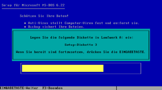Nach und nach fordert Sie das Installationsprogramm auf, die jeweilige Installationsdiskette einzulegen.