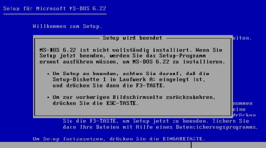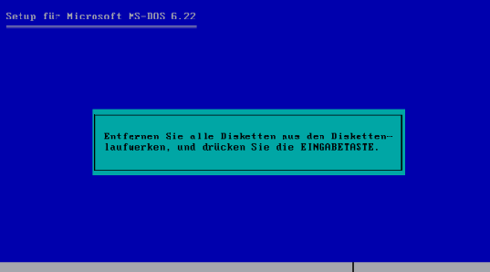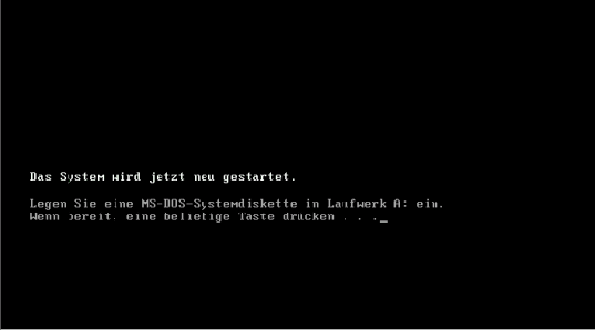 Nachdem die drei Disketten eingespielt wurden, ist die letzte noch zu entnehmen um den Rechner für den notwendigen Neustart herzurichten.