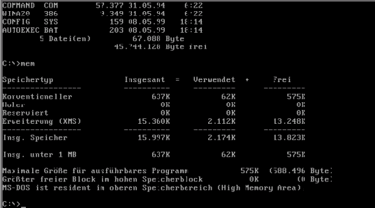 Es ist geschafft. Nun können Sie auf Ihrem Rechner mit DOS arbeiten. Man sollte spätestens hier erwähnen, dass auch heute im Bereich der Industrie immer noch DOS basierende Rechner und Programme eingesetzt werden. Daher wird etwas DOS Wissen sicherlich nicht schaden.