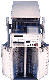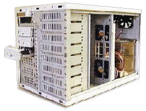 Hierbei ist der eigentliche Rechner in einem 19" Gehäuse, die Speichermedien sind in seitlich wegklappbaren Schächten untergebracht. Selbstverständlich ist alles auf Redundanz und Ausfallsicherheit ausgelegt und die einzelnen Devices sind Hot-Plug fähig.