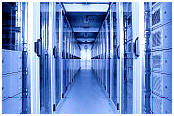 Bei Internetprovidern, Rechenzentren und anderen Firmen mit viel Rechentechnik finden Serverräume Verwendung, bei denen der Industriestandard ( 19" Technik) Verwendung findet. Hier wird sowohl die eigentliche Rechnertechnik als auch die gesamte Verschaltungstechnik mit Netzwerk, Internet, ISDN usw. untergebracht. Diese Räume beinhalten eine komplette Klimaanlage mit unterbrechungsfreier Spannungsversorgung und Notstrom Generatoren. Dadurch können solche kleinen Rechenzentren bei Spannungsausfall auch autark arbeiten. Unsere Abbildung zeigt ein solches Rechenzentrum nahe Karlsruhe.