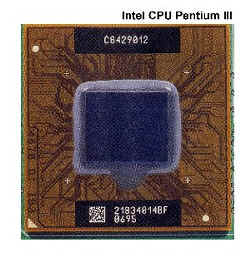 Abbildungen zeigen rechts eine Intel CPU Pentium III mit 800 MHz