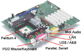 Pentium 4 Mainboard mit ISA und PCI Slots |