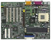 Anstelle des Pentium 4 kommt hier ein Athlon bzw. Duron zum Einsatz. Reichlich Steckplätze zeichnen für einen Einsatz in Netzwerkservern, optional sind auch Sound und Modem verfügbar. Das macht dieses Board dann auch für den Power User interessant. Hardware Monitoring ist natürlich vorhanden. |
