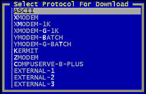 Zu den bekanntesten Übertragungsprotokollen zählen X-MODEM sowie Z-MODEM. Die Abbildung zeigt eine kleine Auswahl gängiger Protokolle.